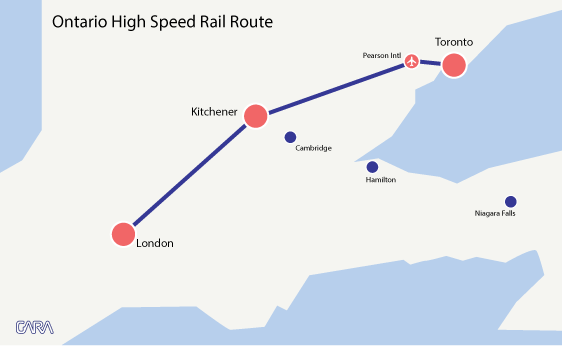 Of course, if you did refer to high-speed rail by any of those names, you probably wouldn’t have governments like Ontario’s pledging to spend 11 billion dollars to build a high-speed rail line from Toronto to Kitchener-Waterloo and London, Ontario. Even to those who support rail transport over less efficient, more polluting air and road transport, this move is difficult to justify from an economic perspective, given the population density of Southwest Ontario.