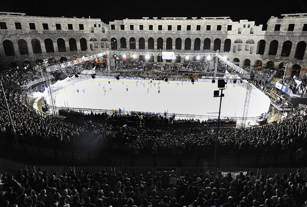 Weather of course is the big challenge in setting up an outdoor hockey league. Even with the advances in outdoor ice maintenance that have been made in recent years for the NHL, the challenge is nowhere near overcome. At the NHL’s outdoor game in Lake Tahoe last year, too much sunlight forced a 10-hour delay. At this year’s outdoor game in Minneapolis, the temperature fell to -9 celsius, and the windchill to -18. And at a number of previous outdoor games, especially those held in southern cities, keeping the ice cold required a very wasteful amount of energy. The NHL’s commissioner Gary Bettman recently said the league will no longer hold outdoor games in these cities, in order to reduce the NHL’s climate footprint.